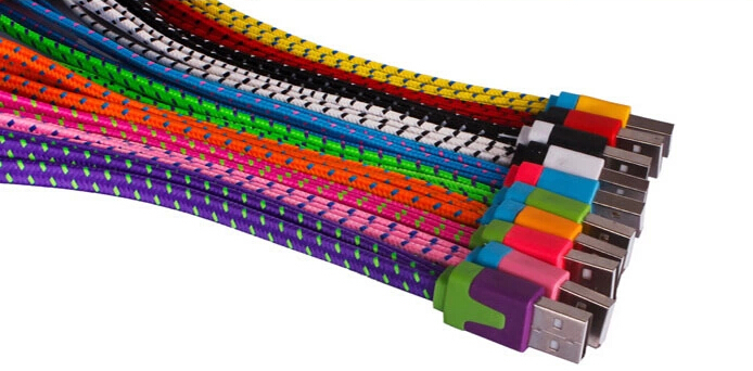 Braided Weave Flat 3 in 1 USB Charger Cable,V8,Iphone
